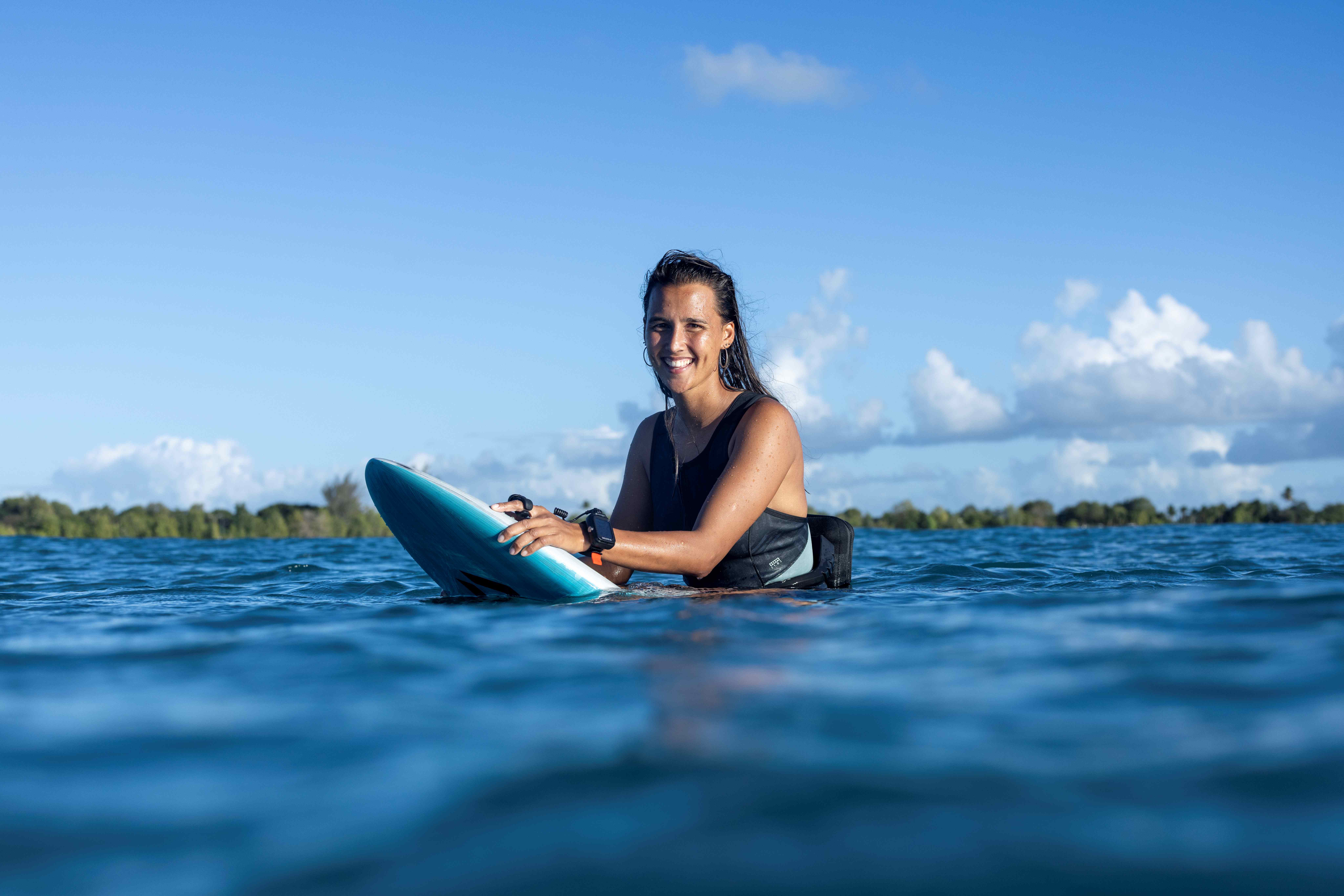 This free‑minded waterwoman from New Caledonia discovered Wing Foiling in 2020 and instantly connected with the effortless glide above the ocean.